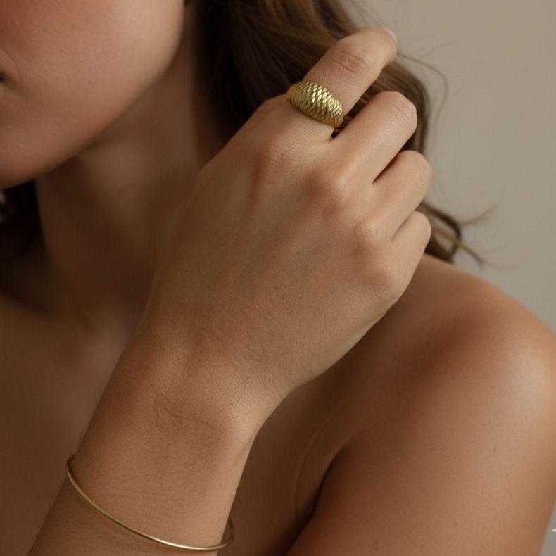Conheça nossa linha de anéis, onde a joalheria clássica encontra a autenticidade do feito à mão. Produzidos em ouro 10k, uma escolha robusta que oferece o equilíbrio perfeito entre o brilho do ouro e a resistência para o uso contínuo. Nossas peças são atemporais, criadas para serem usadas hoje e passadas adiante, mantendo sempre a elegância.
